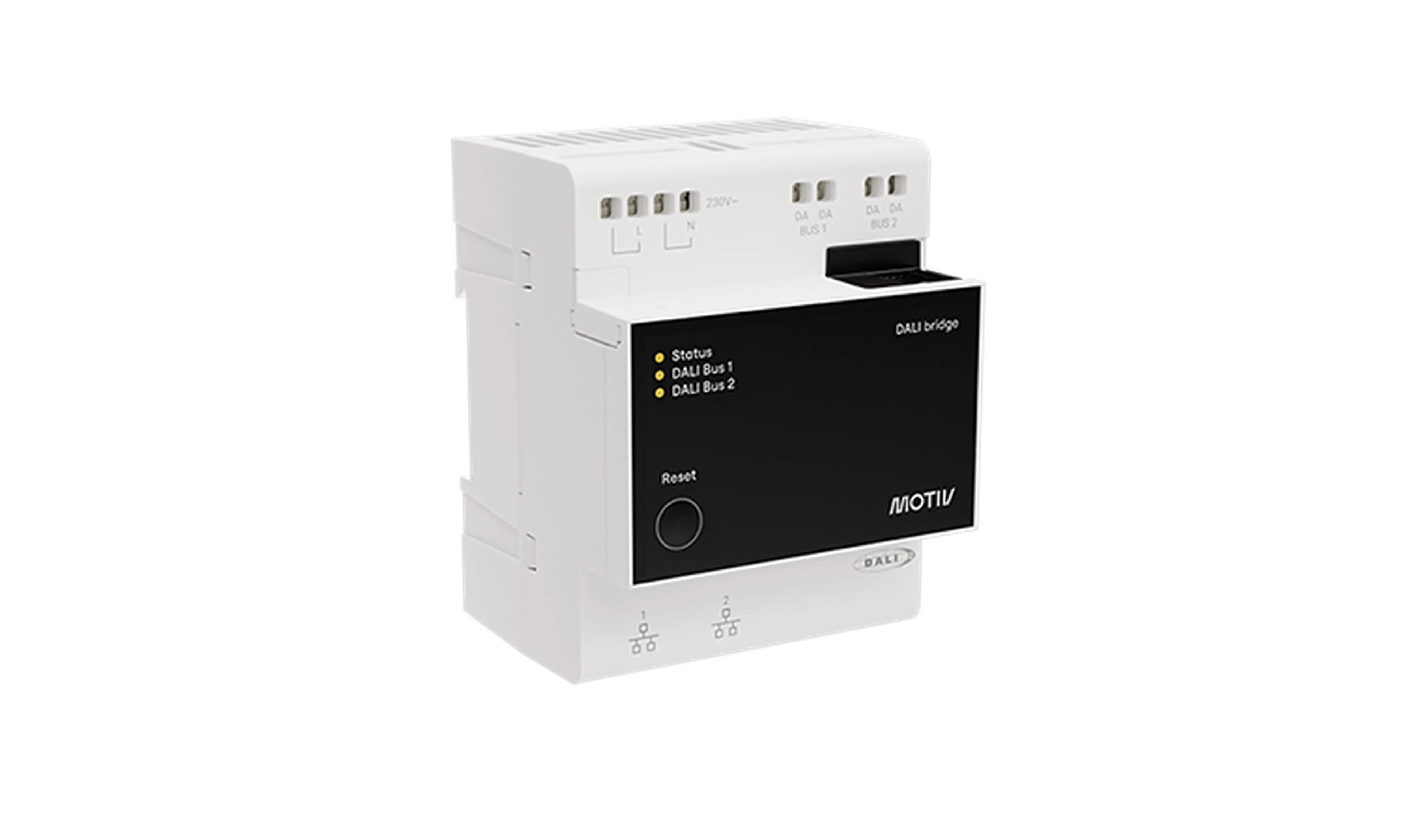 The MOTIV DALI bridge connects lighting installations directly to the building automation system or to a MOTIV Pro controller.